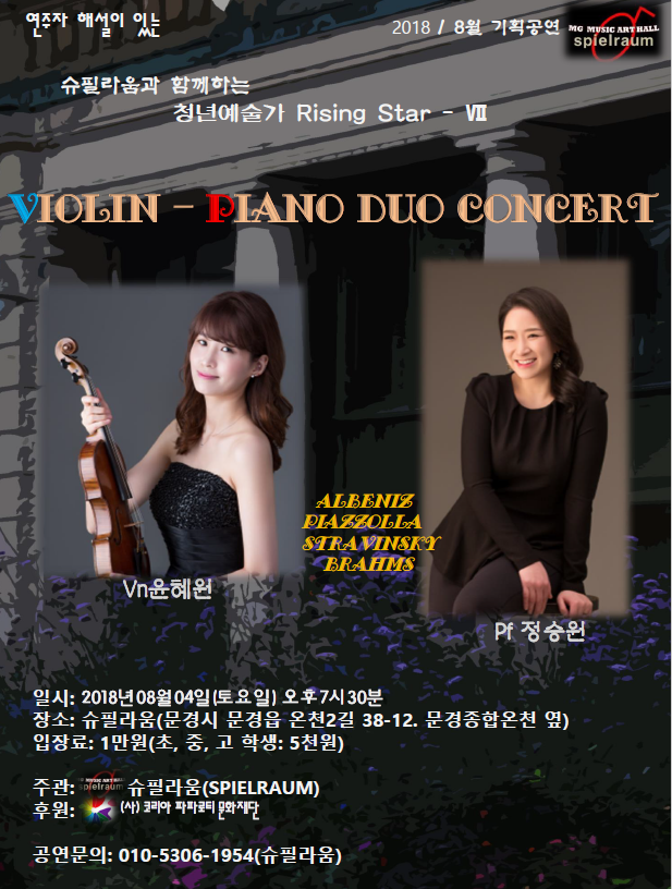 문경읍에 소재한 슈필라움(관장 신기철)에서는 8월4일(토) 오후 7시 30분 본 공연장에서 「청년예술가와 함께하는Rising Star』 기획공연 행사가 다채롭게 진행될 예정이다.