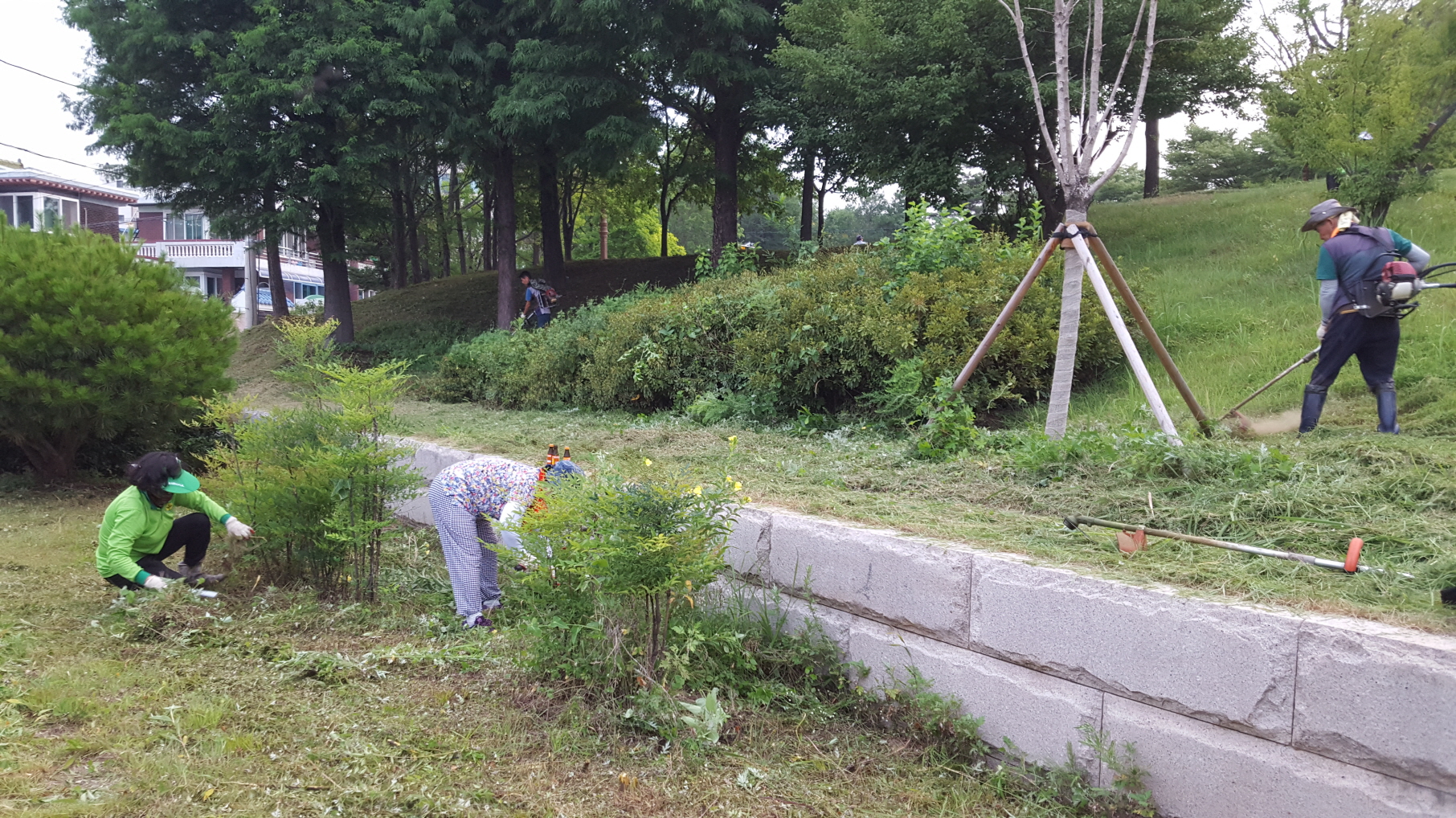 연일 35도를 넘나드는 폭염 속에서도 새마을회원 30여 명은 새벽 5시부터 중앙공원 일대 잡풀을 베고 쓰레기를 수거하는 등 주변을 깨끗하게 정비했다.