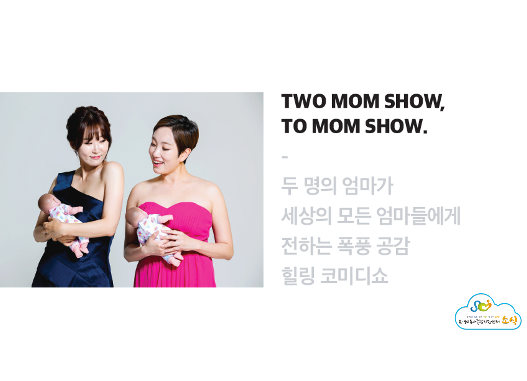 ‘밝게(洞) 소통하자(通)’는 의미를 담은 ‘통(洞)통(通) 육아콘서트 투맘쇼’는 토크형식의 콘서트로 육아맘의 희로애락을 소재로 관객들과 함께하는 솔직담백한 이야기로 90분간 풀어나가며 어머니들의 육아에 대한 애환과 고충을 나눈다.