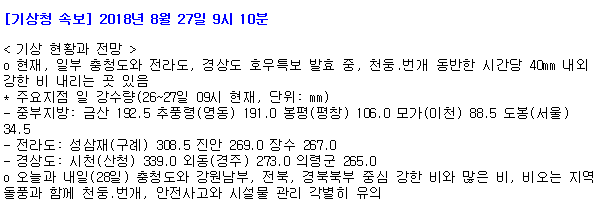 월요일인 오늘(27일) 문경을 포함한 경북 내륙에는 국지성 호우가 쏟아지고 있다.