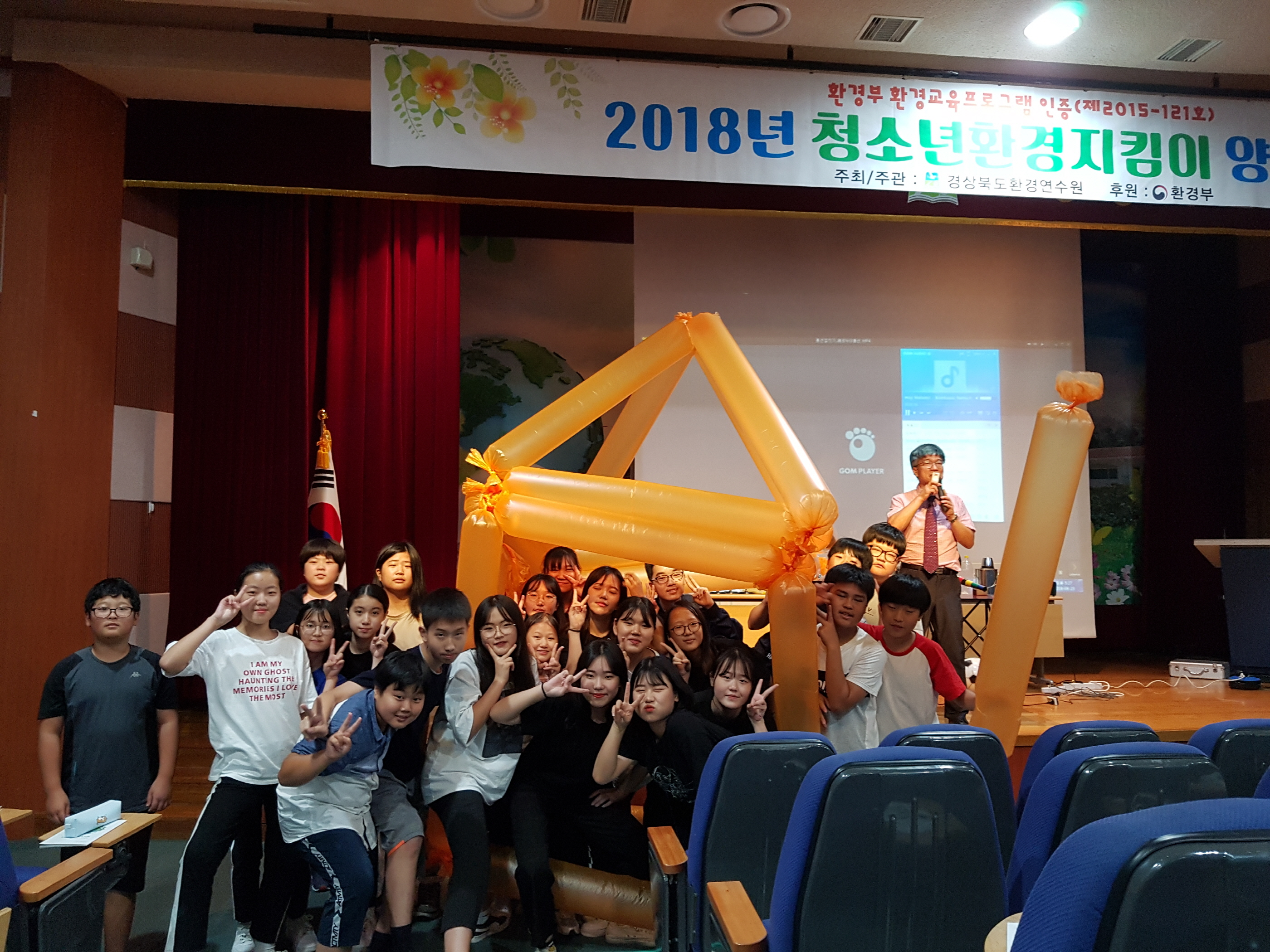 산북중학교(교장 김미숙) 전교생은 8월 23일부터 24일 이틀 동안 경상북도환경연수원에서 주최하는 청소년환경지킴이 양성 교육 8기에 참가하였다.