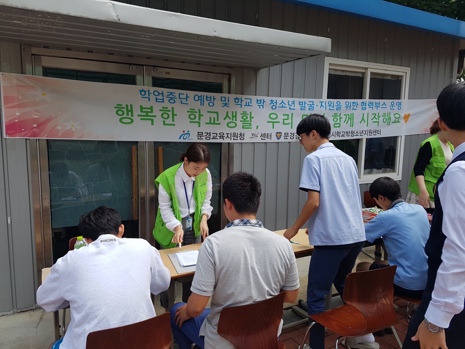 경상북도문경교육지원청(교육장 엄재엽)은 지역유관기관과 문경중학교 Wee클래스 합동으로 9월 11일 학업중단 위기 학생의 조기발견과 예방을 위해 「학업중단 예방의 날」부스를 운영하였다.