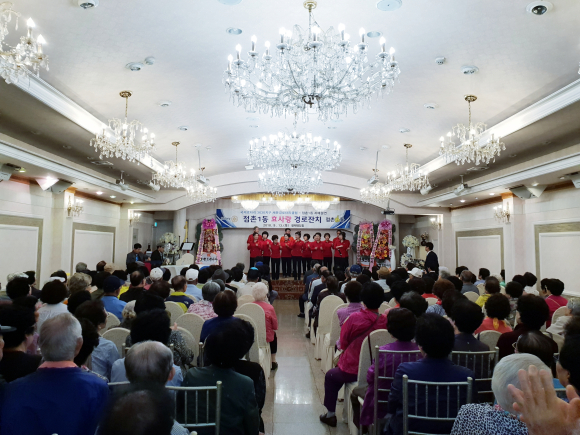 점촌1동 자매결연 단체인 새문경로타리 클럽(회장 김범진)은 지난 13일 황제웨딩홀에서 점촌1동 어르신 200여 명을 모시고 건강하고 신명나는 삶을 위한 경로잔치를 개최했다.