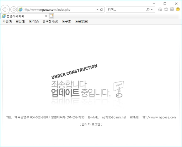 | ↑↑ 2016년 4월부터 현재까지 중단된 문경시체육회 홈페이지 초기화면 |