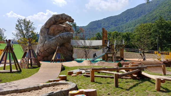 문이와 경이가 거인을 찾아 나서는 창작동화 “거인의 숲” 스토리를 활용한 증강현실(AR) 놀이터 ‘자이언트 포레스트’는 총 9개 테마 코스로 구성된 야외체험시설로 스마트폰 앱과 연동해 어린이들에게 색다른 경험을 제공한다.