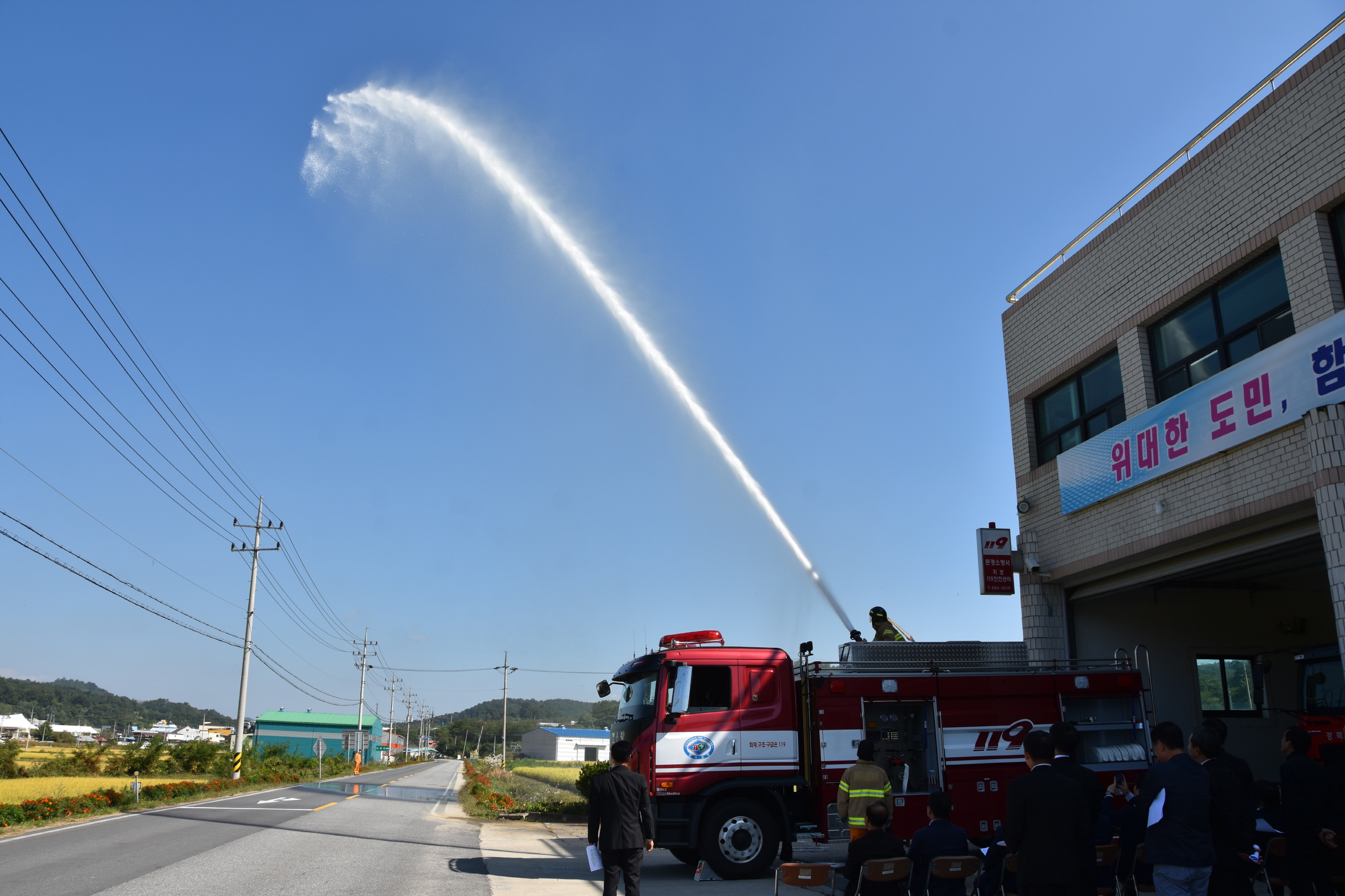 문경소방서(서장 이진우)는 10월 2일 지보119안전센터 차고 앞에서 신형 중형물탱크 소방차량 시연회를 가졌다.