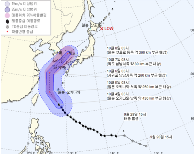 특히 이번 태풍의 이동속도와 경로, 태풍의 발달 정도에 따라 강수 구역과 예상 강수량이 변동될 수 있다.
