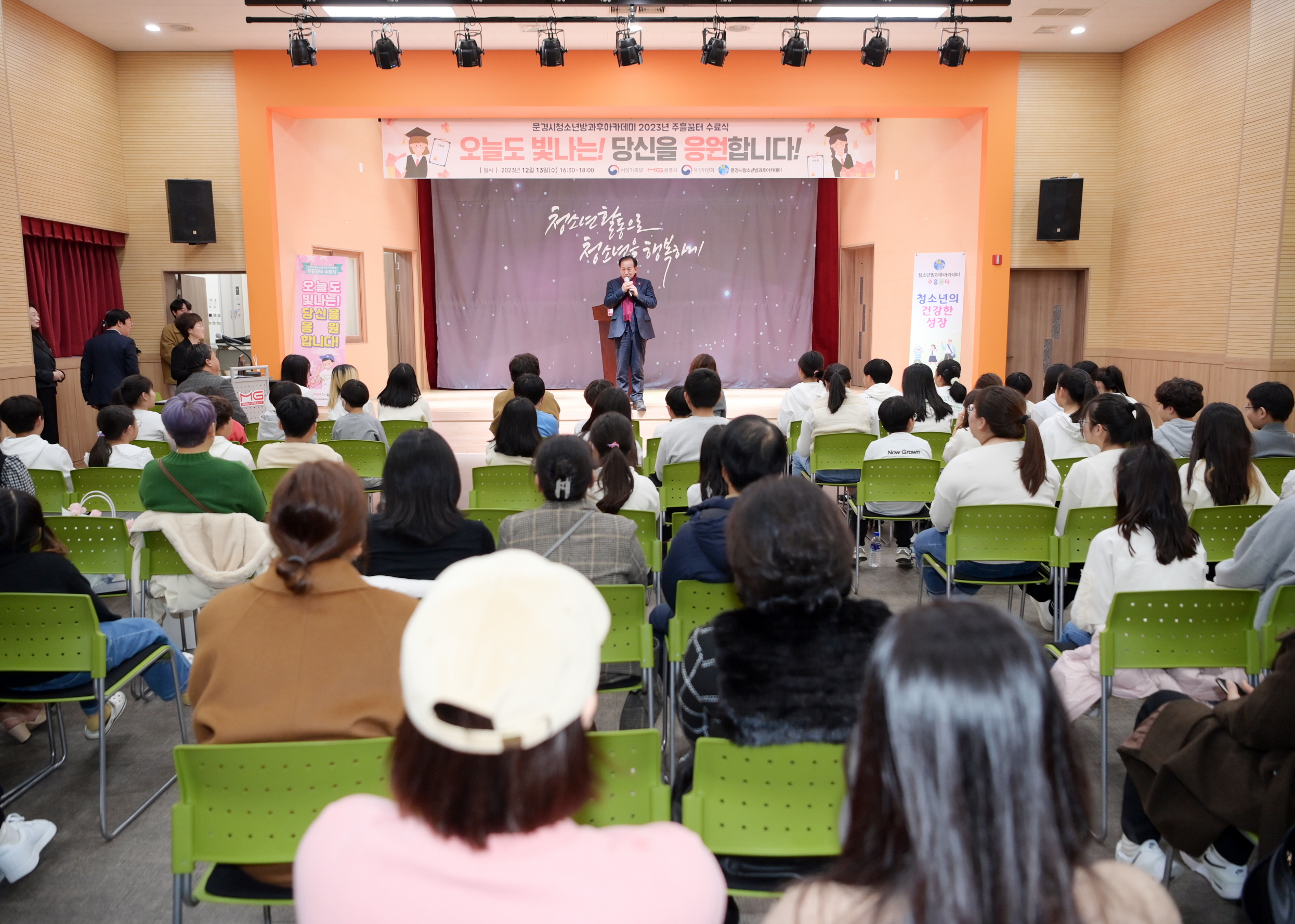 문경시(청소년방과후아카데미)는 12월 13일 청소년문화의집 3층 다목적홀에서 ‘오늘도 빛나는! 당신을 응원합니다!’라는 주제로 2023년 수료식을 개최했다.