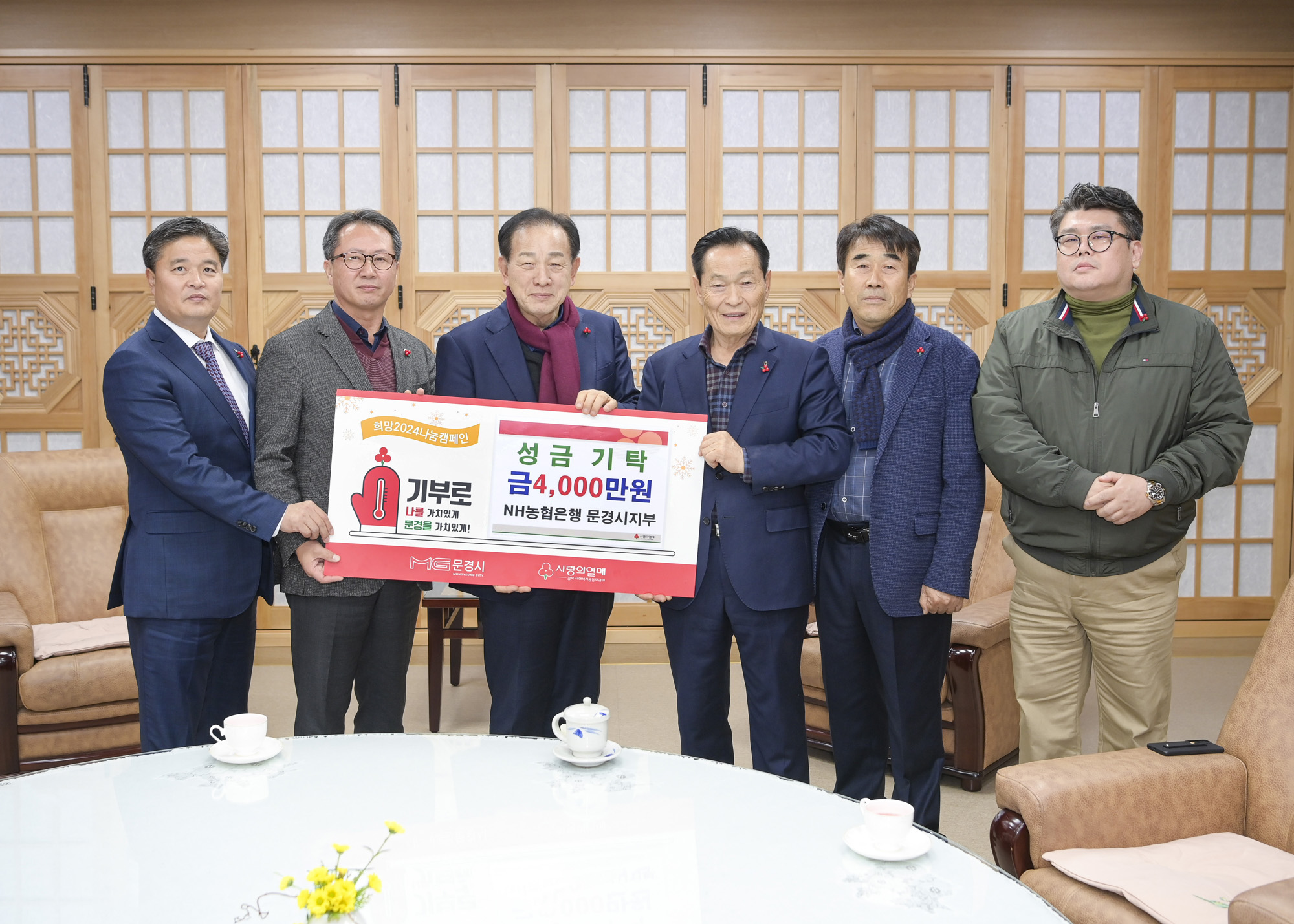 12월 1일부터 시작한 연말 이웃돕기 성금 모금 운동인 「희망2024나눔캠페인」의 기부 릴레이가 계속되는 가운데, 문경시 NH농협은행 문경시지부에서 성금 4,000만원을 문경시에 기탁했다.