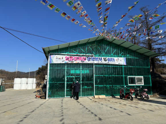 산양면 위만1리 청년회는 12월 23일 위만1리 (구)의산초등학교 입구 앞(위만리 61번지)에서 우마이 얼음썰매장을 개장했다.