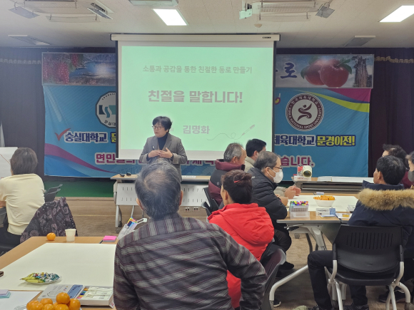 동로면 주민자치위원회(위원장 박종대)는 12월 22일(금) 동로면 행정복지센터에서 수강생 30여 명이 참석한 가운데 ‘소통과 공감을 통한 친절 교육’을 실시했다.