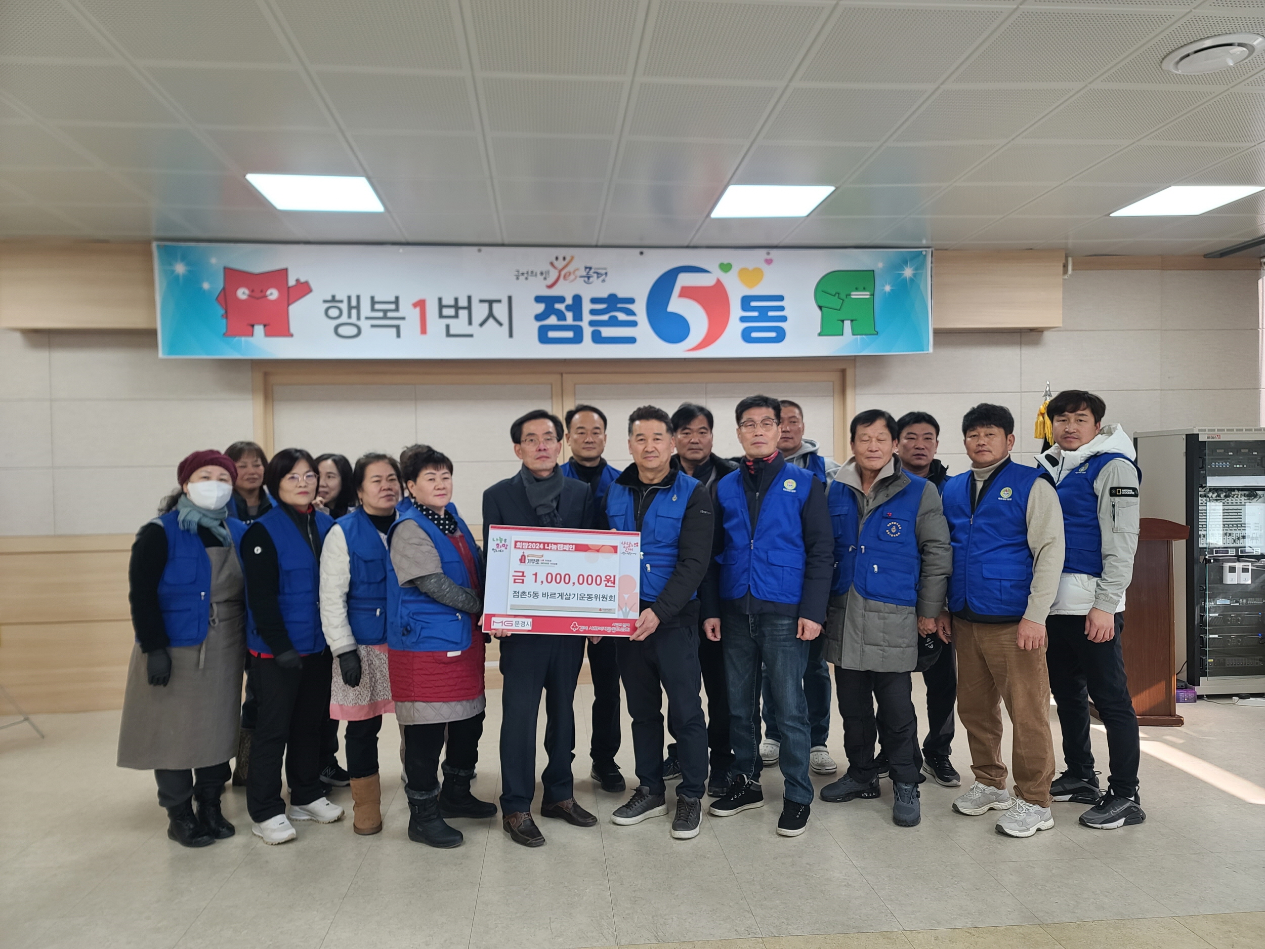 문경시 점촌5동 바르게살기운동위원회(위원장 백훈철)는 12월 22일(금) 점촌5동 행정복지센터를 방문하여 이웃 돕기 성금 100만원을 전달했다.