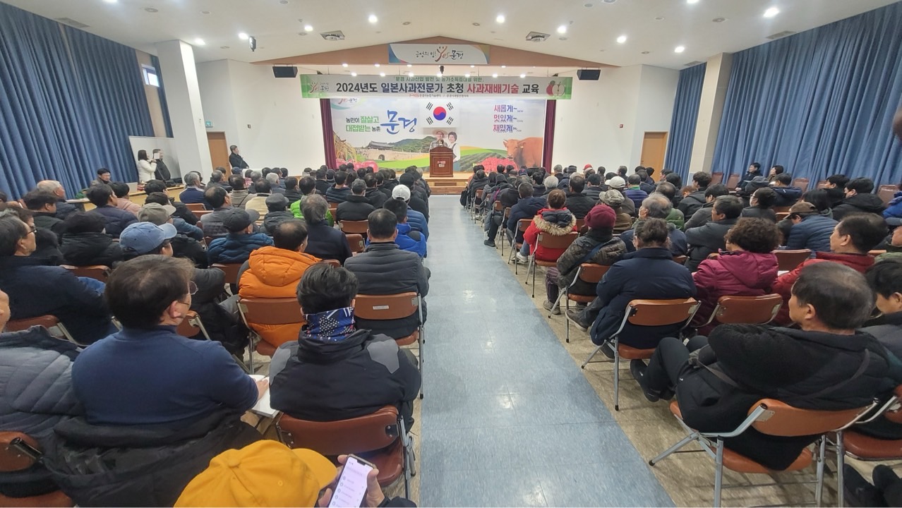 문경시농업기술센터(소장 김미자)는 1월 8~11일까지(4일간) 기술센터에서 일본사과재배 전문가 구로다 야스마사씨와 오카다 오사무씨를 초청 관내 사과재배 농업인을 대상으로 동계 정지전정 현장교육과 이론교육을 실시하였다.