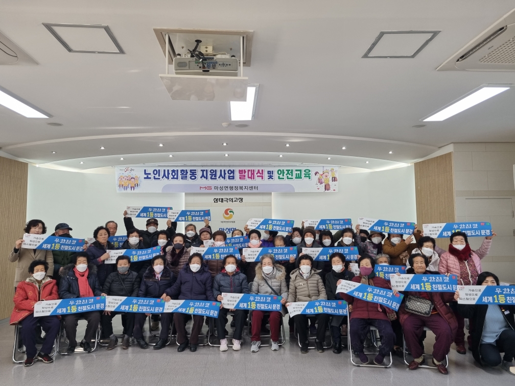 마성면(면장 이저영)에서는 2024.1.12.(금) 마성면행정복지센터 2층 강당에서 노인일자리 사업 참여 어르신들 37명이 참석한 가운데 노인일자리사업 발대식 및 안전교육을 실시하였다.