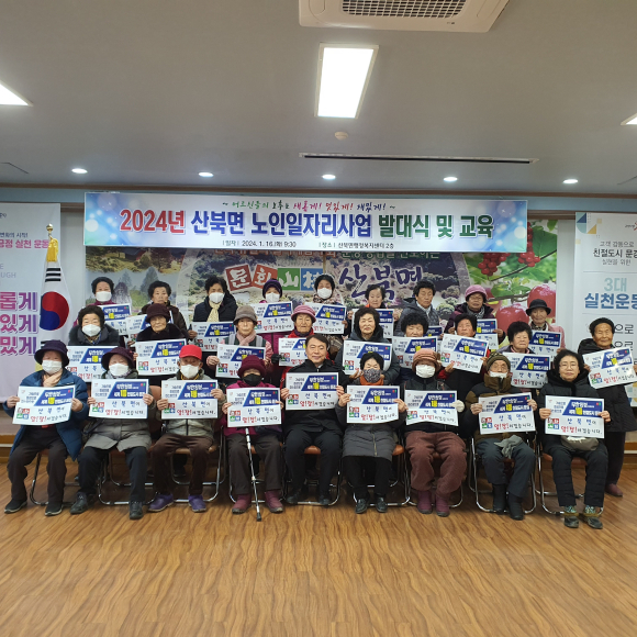 산북면(면장 엄상익)은 지난 16일 산북면행정복지센터 회의실에서 노인일자리사업 참여자 29명이 참석한 가운데 2024년 노인일자리사업 발대식 및 교육을 실시했다.