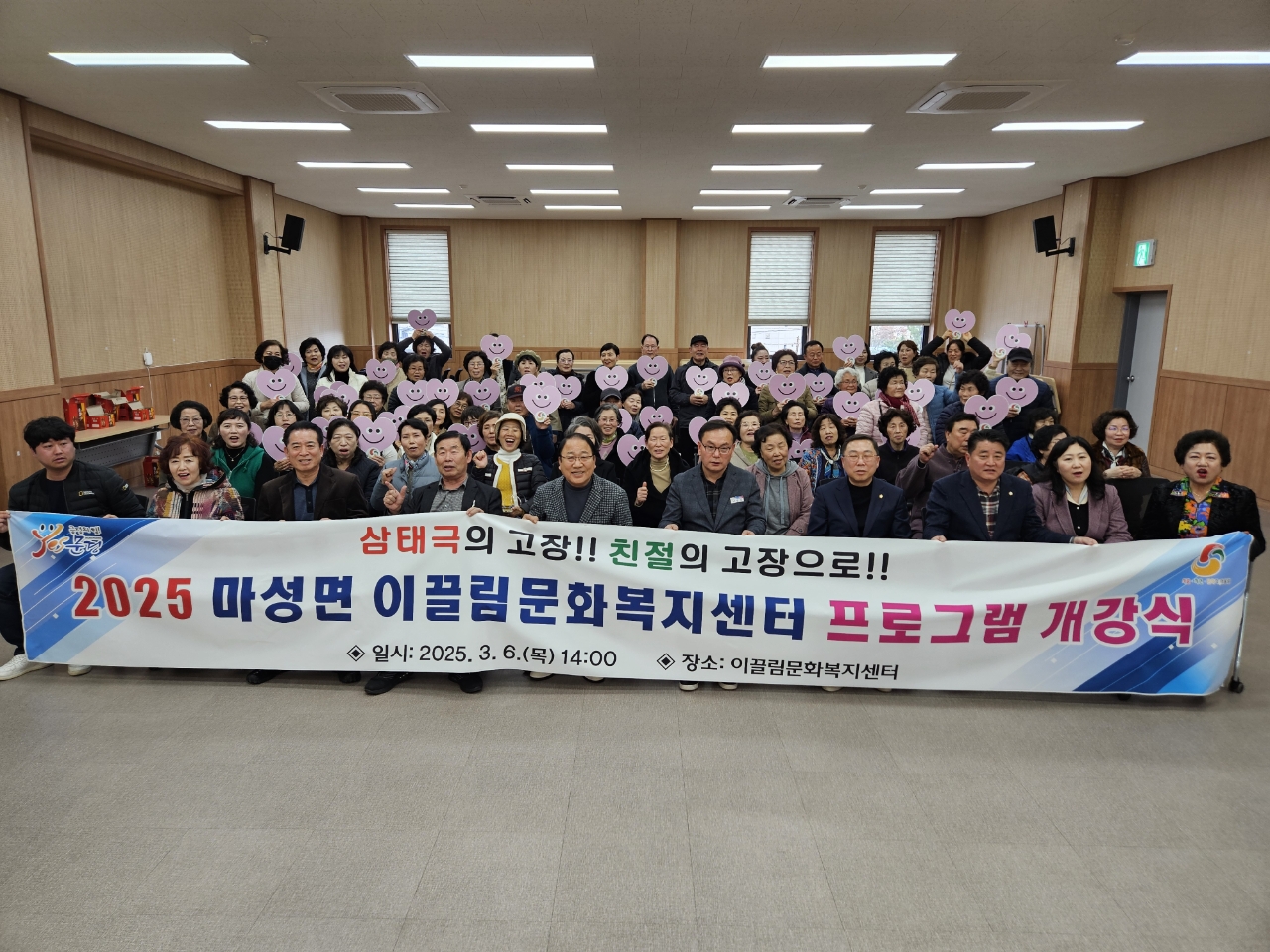 마성면 행정복지센터(면장 남명섭)는 지난 6일 오후2시에 마성면 이끌림문화복지센터에서“2025 이끌림문화복지센터 프로그램 개강식”을 개최했다.