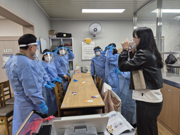 또한, 관리자 및 종사자를 대상으로 집단시설 빈발 감염병의 증상과 예방법 등 이론 교육과 개인보호구 착·탈의, 손 위생(손 소독, 손 씻기) 등 실습을 통해 감염 관리에 대한 이해도와 실천율을 높이고자 한다.