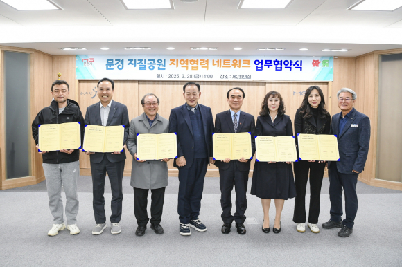 문경시는 3월 28일(금) 시청 제2회의실에서 신현국 문경시장과 지역협력 업체 대표가 참석한 가운데‘문경지질공원 지역협력 네트워크(지오파트너) 업무 협약식’을 개최하였다. 여기서‘지오파트너’란 지질공원 지역협력 네트워크 대상자로,‘지오(geo)’는‘지질공원(geopark)’을,‘파트너(partner)’는‘협력관계’를 의미한다.