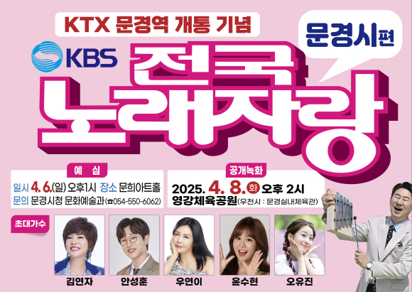 문경시가 주최하고 KBS가 주관하는 2025년 KBS 전국노래자랑 문경시편 공개녹화가 오는 4월 8일(화) 오후2시에 영강체육공원에서 개최된다.