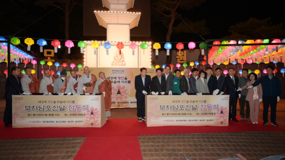 문경시불교연합회(회장 상오스님)는 불기 2569년 부처님 오신 날(5월 5일)을 앞두고 4월 7일(월) 오후 7시 30분에 모전공원 광장에서 봉축탑 점등식을 봉행했다.