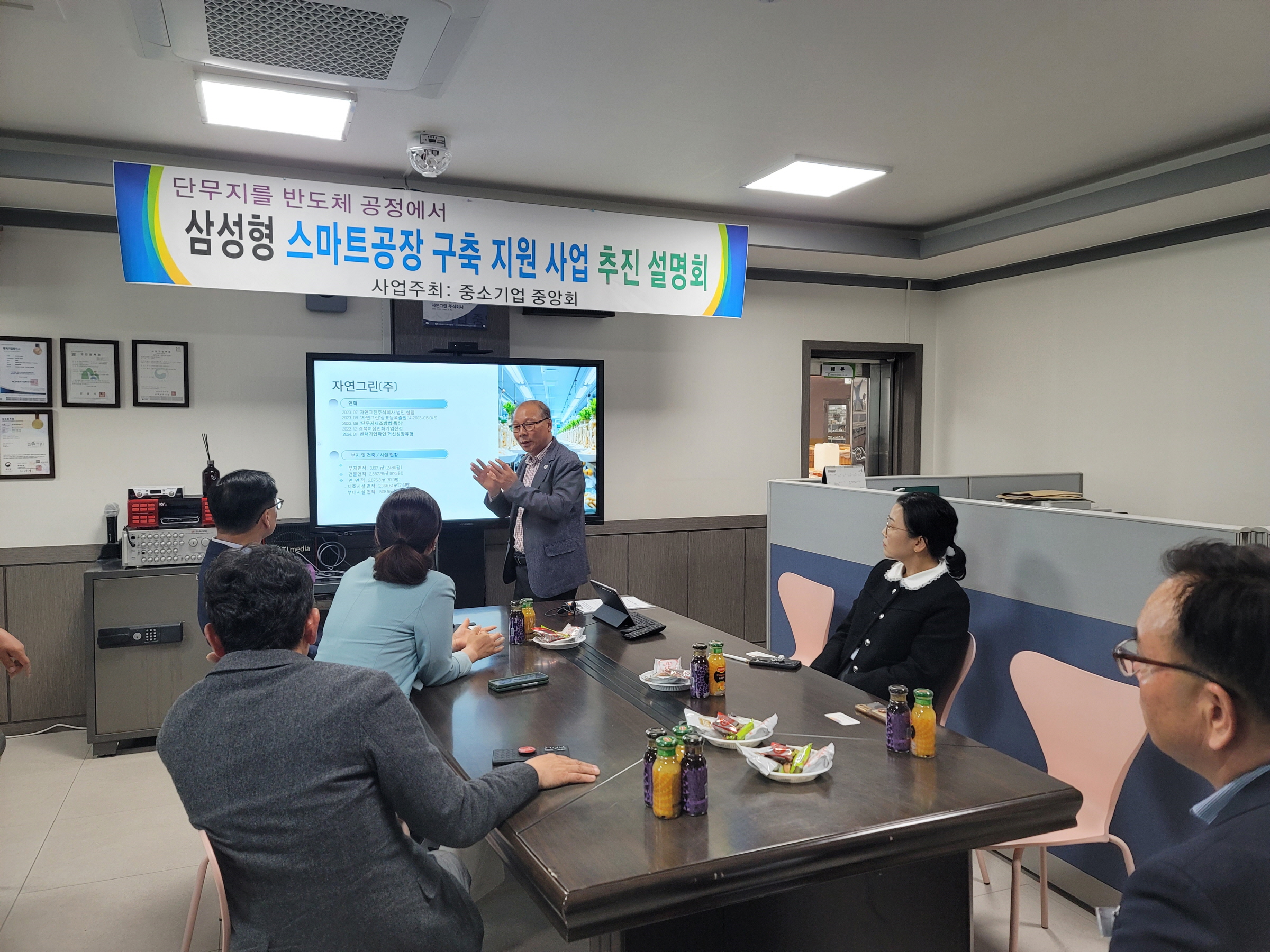 문경시 마성농공단지 내 자연그린㈜(대표이사 김경범)는 지난 23일 김대식 문경부시장, 김경숙 도의원 등 20여명이 참석한 가운데 삼성형 스마트공장 구축 지원 사업 추진 설명회를 가졌다.