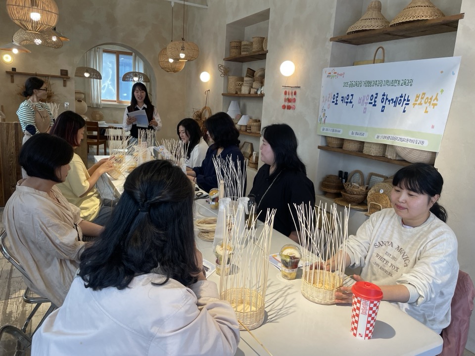 ◈ 연수 후에는 라탄가방 만들기 체험활동이 진행되어 자연 친화적 감성과 창의력을 함께 기를 수 있는 활동을 하여 학부모들의 호응을 얻었다.