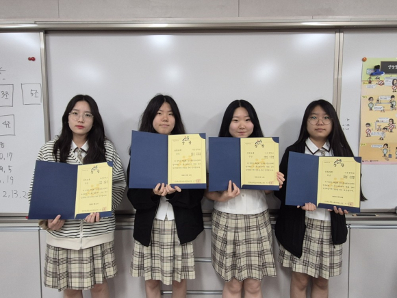 또 과학토론 부문에서는 3학년 민O현, 이O진 학생이 참가하여 최신 과학 이슈에 대한 심도 있는 분석과 토론 실력을 발휘하여 은상을 받았다.