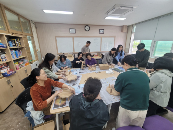 □ 산북중학교는 5월 16일(금) 본교 수학실에서 학부모와 교직원을 대상으로 '가족과 함께 대화를 나누어요! 연화 쟁반 우드 버닝' 연수를 개최했다. 이번 연수는 학부모와 교직원이 함께 모여 자연스럽게 대화와 상담의 시간을 갖고, 나무쟁반에 그림이나 글씨를 새기는 우드 버닝 체험을 통해 서로 소통하며 친밀감을 높이는 소중한 기회가 되었다.