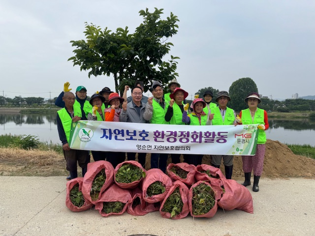 영순면에서는 지난 6월 8일 영강다리 및 포내리 일대에서 영순면 자연보호협의회 회원 20여 명 등이 참여한 가운데 생태계 교란식물인 ‘가시박’을 뿌리째 제거하는 가시박 퇴치 활동을 진행했다.