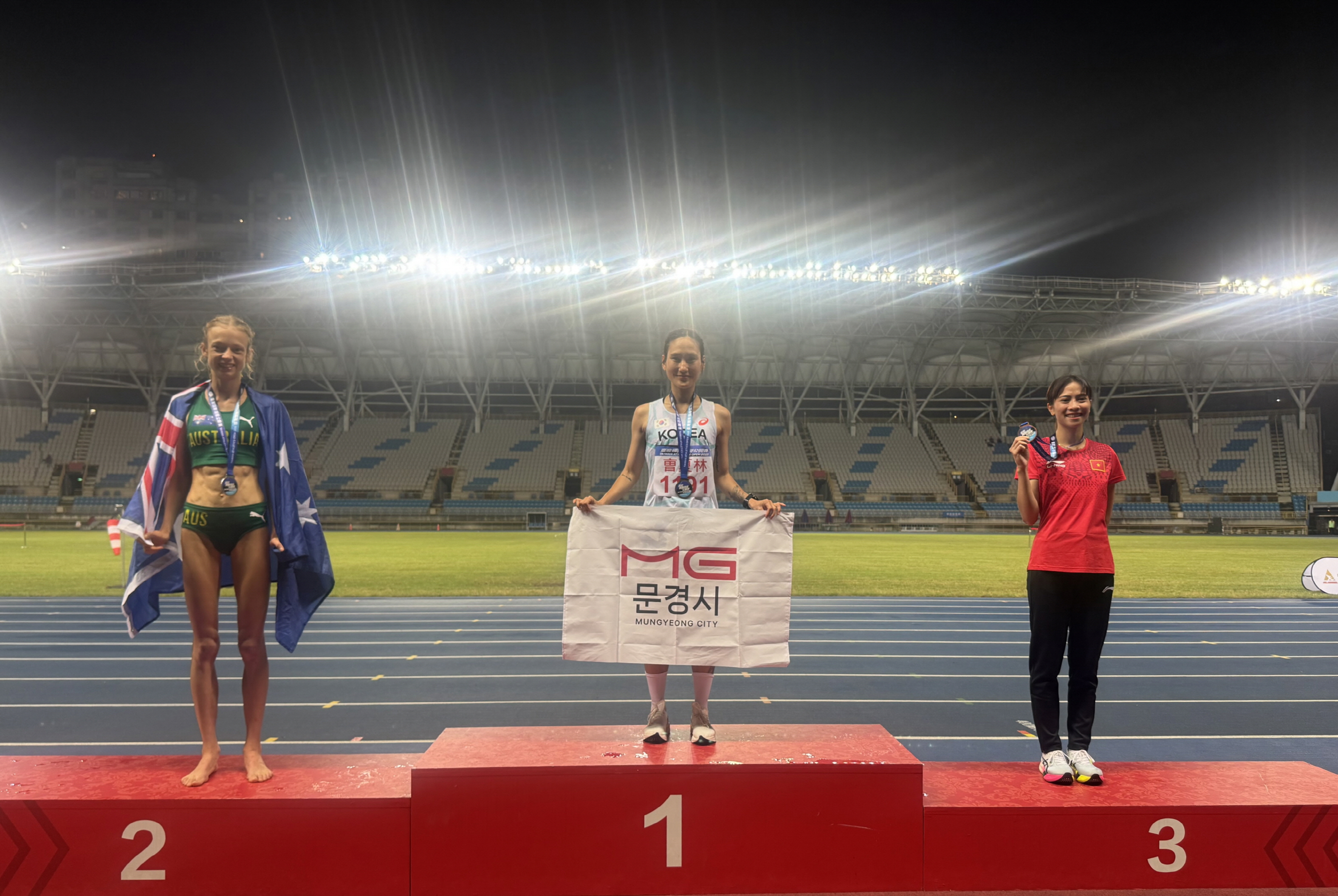문경시청육상단 소속 조하림 선수가 지난 7일 20시55분(한국시간) 대만 타이베이 시립경기장에서 열린「2025 대만 국제오픈육상선수권대회」에 3000m 장애물 경기에 출전해 1위로 결승점을 통과했다.