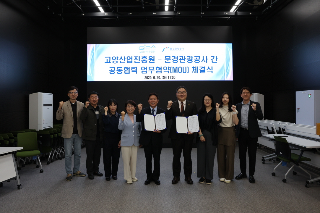 문경관광공사(사장 신필균)는 9월 30일(화) 고양시 덕양구에 위치한 고양아쿠아특수촬영스튜디오에서 고양산업진흥원(원장 한동균)과 관광·산업 콘텐츠 교류 및 상호 협력 강화를 위한 업무협약(MOU)을 체결했다.