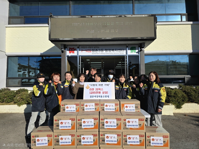 점촌여성의용소방대는 지난 3일 지역사회 사랑과 나눔을 실천하기 위해 라면 20박스(65만 원 상당)를 점촌3동 행정복지센터에 기탁했다.