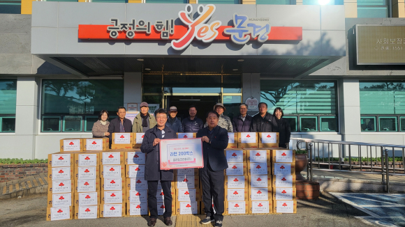 지난 8일 어려운 이웃에게 전달해 달라며 클라임코리아(주)에서 라면 200박스, 합동정미소에서 쌀 20kg 30포를 산양면에 기탁했다.