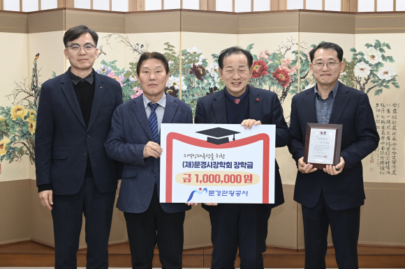문경관광공사는 지난 9일 지역 인재 육성을 위한 사회공헌에 동참하기 위해 문경시장학회에 장학금 100만 원을 기탁했다.