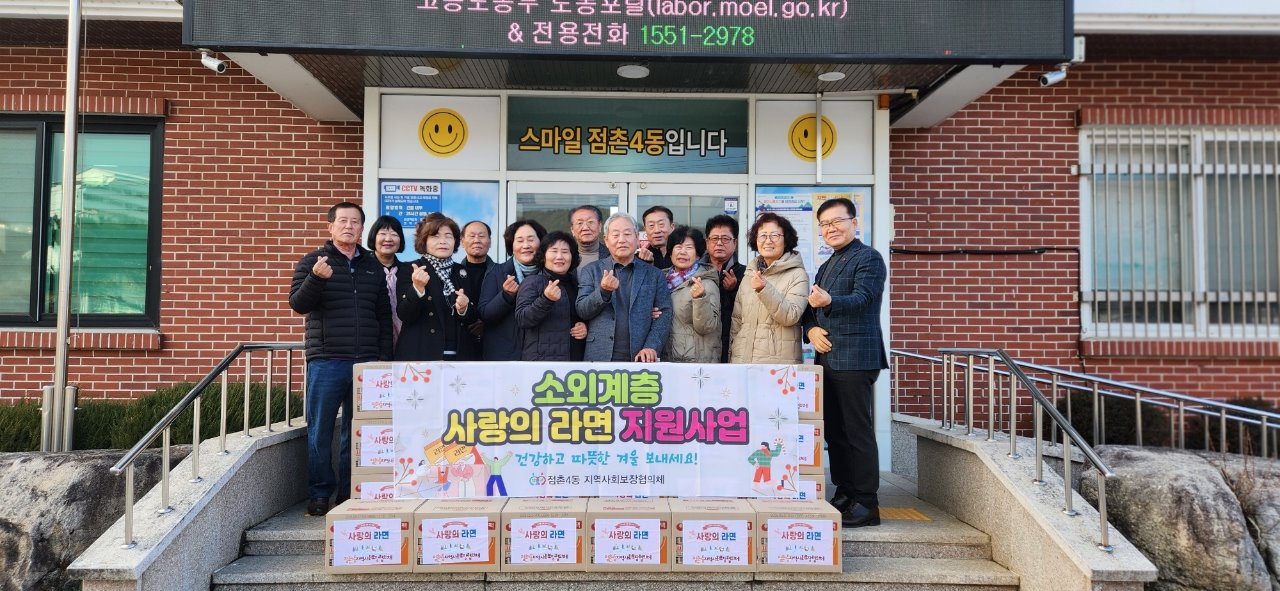 점촌4동 지역사회보장협의체(공공위원장 추장호, 민간위원장 이휘남)는 지난 24일 관내 취약계층 25가정을 방문하여 사랑의 라면을 전달했다.