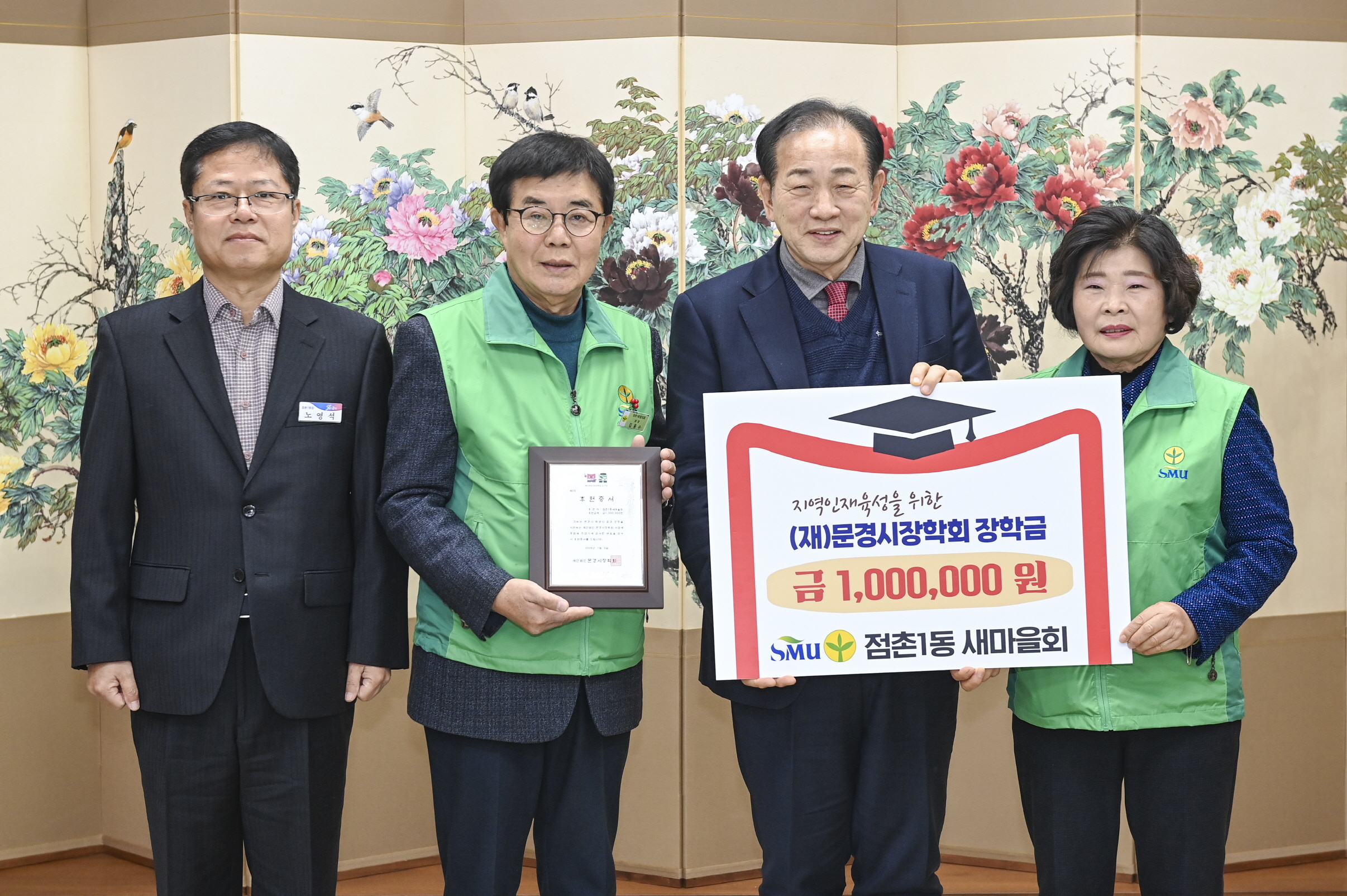 (재)문경시장학회는 지난 5일 점촌1동 새마을회(협의회장 김용수, 부녀회장 김명숙)가 문경시장학회에 장학금 100만 원을 기탁받았다.