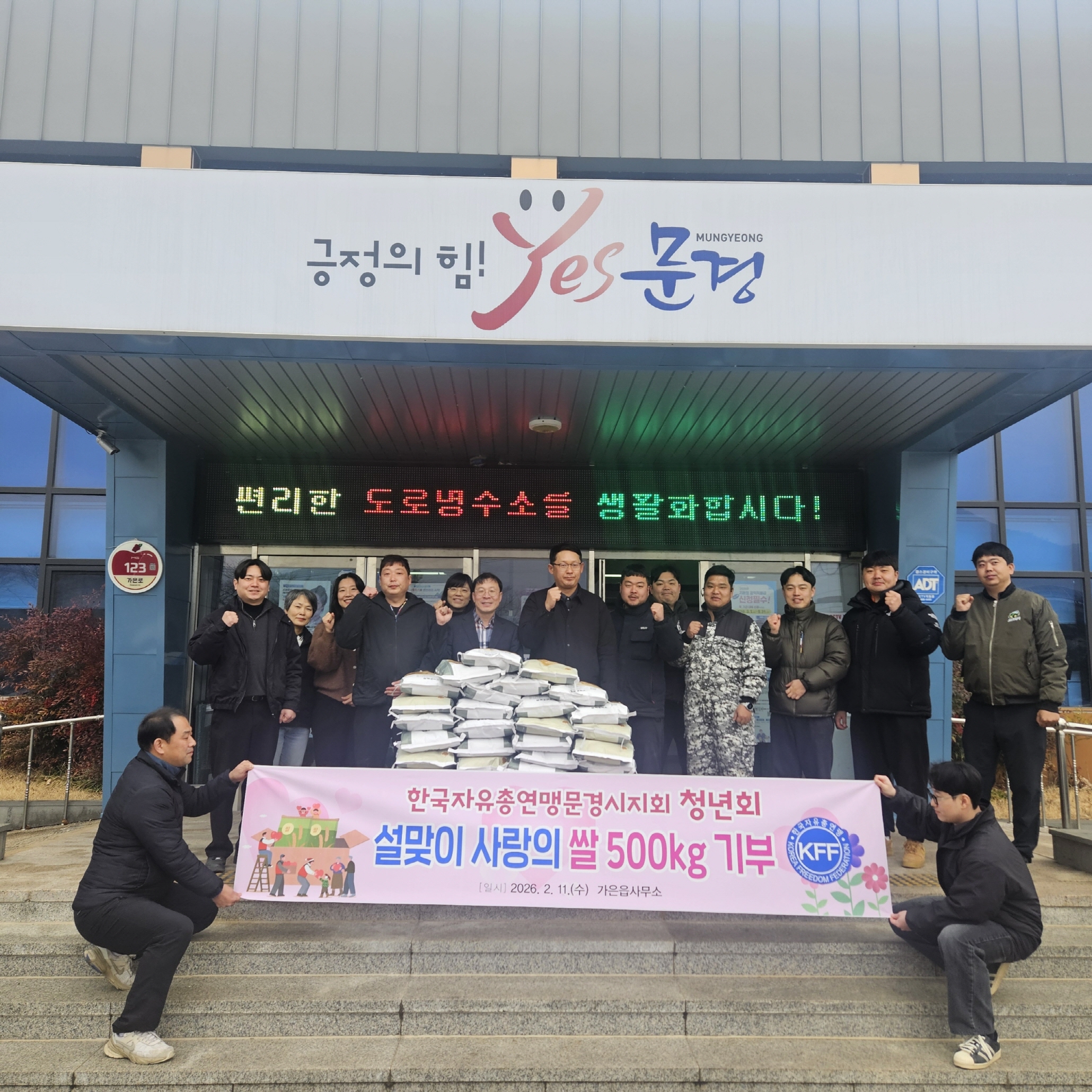 한국자유총연맹문경시지회 청년회(회장 박창규)는 지난 11일 다가오는 설 명절을 앞두고 지역 내 취약계층을 지원하기 위해 쌀(10kg) 50포를 가은읍행정복지센터에 기부하였다.