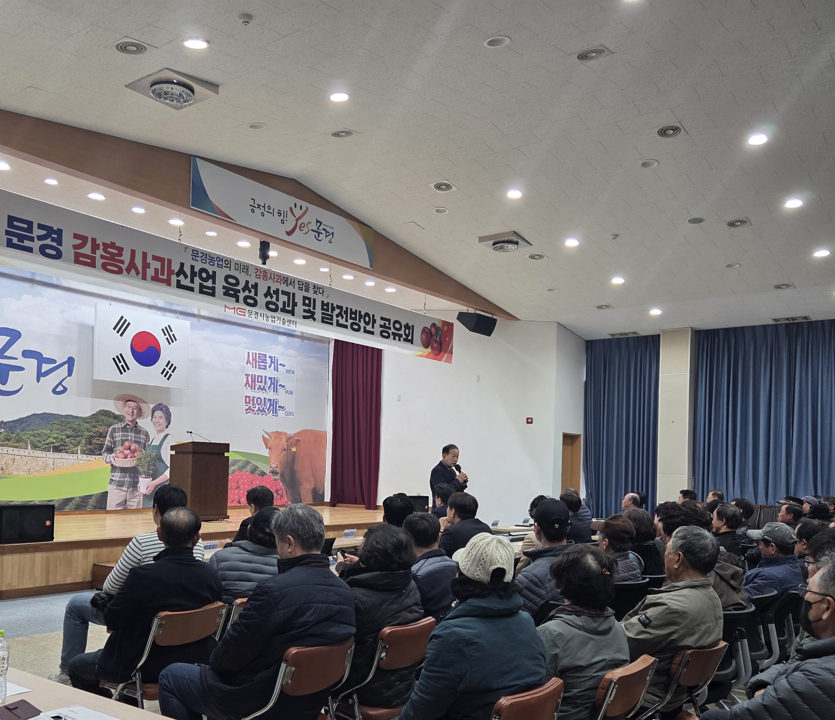 문경시는 지난 26일, 문경시농업기술센터 대강당에서「문경 감홍사과산업 육성 성과보고 및 발전방안 공유회」를 성황리에 개최했다.