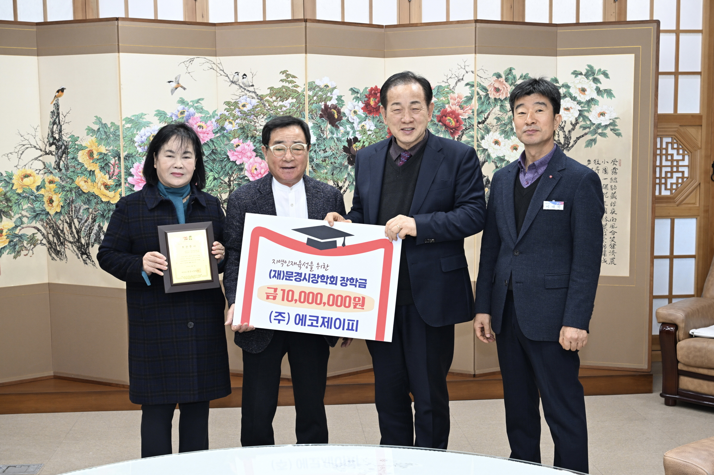 (재)문경시장학회(이사장 신현국)는 지난 3월 3일 지역인재 육성을 위한 장학금으로, ㈜에코제이피에서 1,000만 원을 기탁했다고 밝혔다.